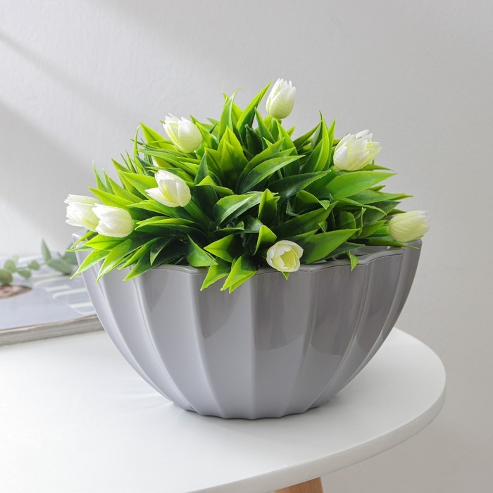 Кашпо для цветов с автополивом «Ракушка», 2,4 л, d=22см, h=10,5 см, цвет серый