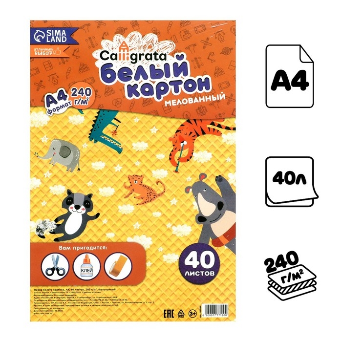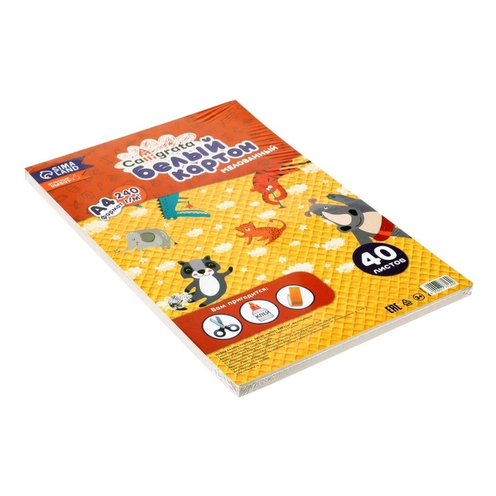 Картон белый А4 Calligrata, 40 листов, 240 г/м2, мелованный, односторонний