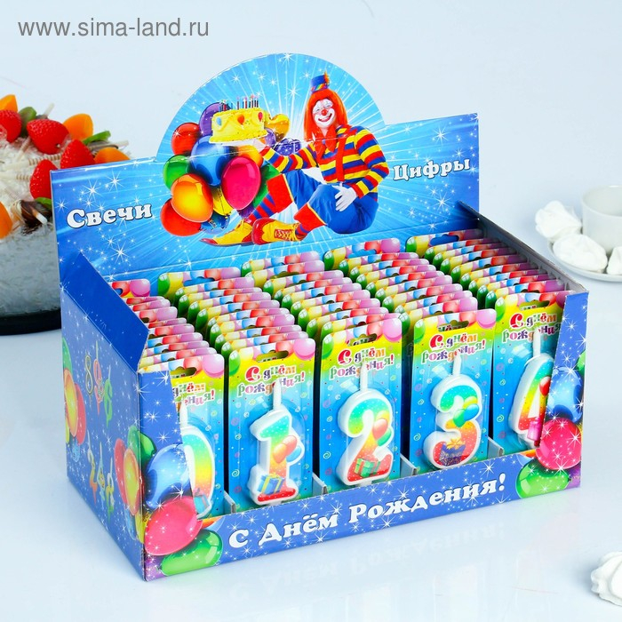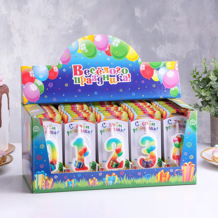 Шоу-бокс со свечами для торта цифры "С подарком", 10,2 см, 50 штук