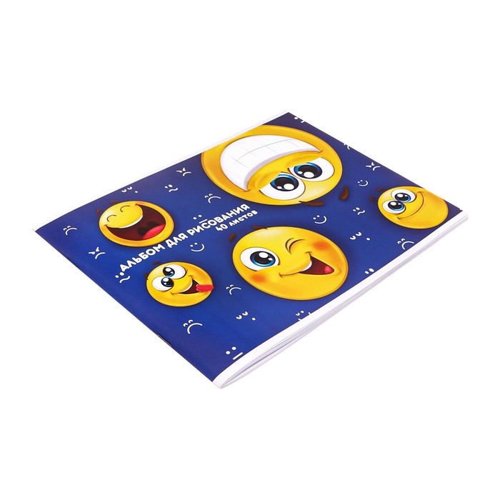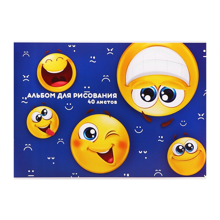 Альбом для рисования А4, 40 листов на скрепке "Смайлики", обложка мелованный картон, блок 100 г/м2