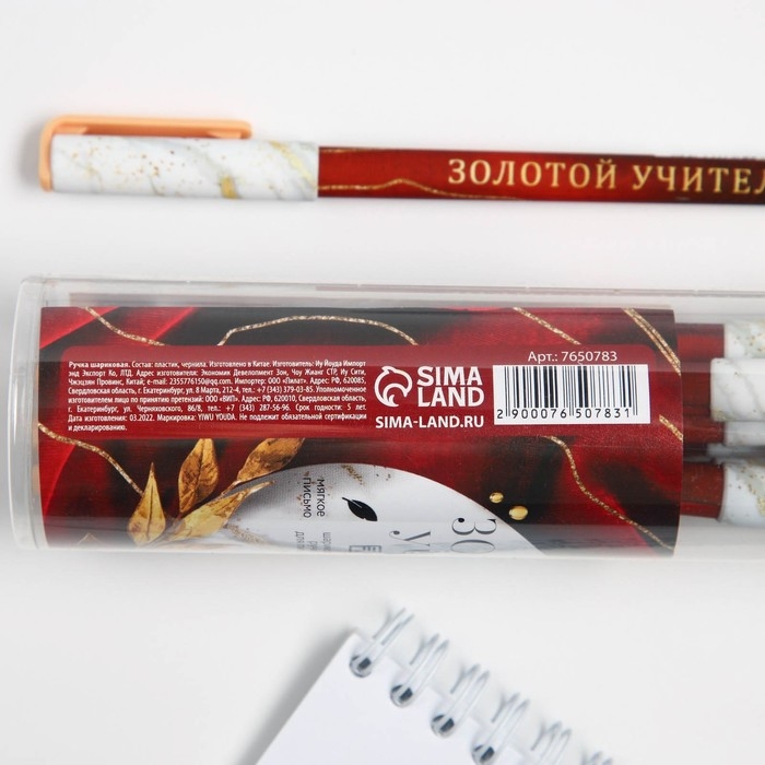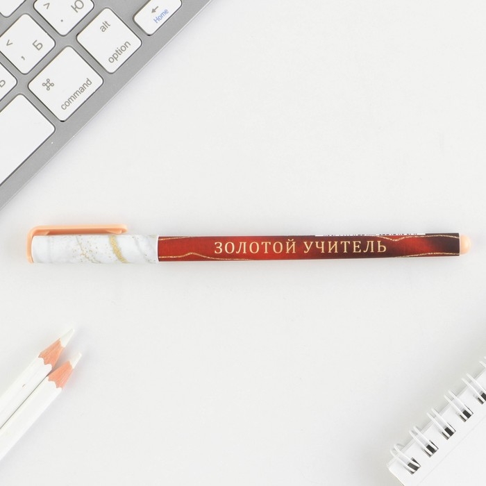 Ручка с колпачком и нанесением soft-touch «Золотому учителю», синяя паста 0.7 мм