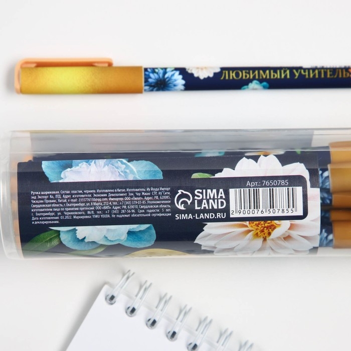 Ручка с колпачком и нанесением soft-touch «Любимому учителю», синяя паста 0.7 мм