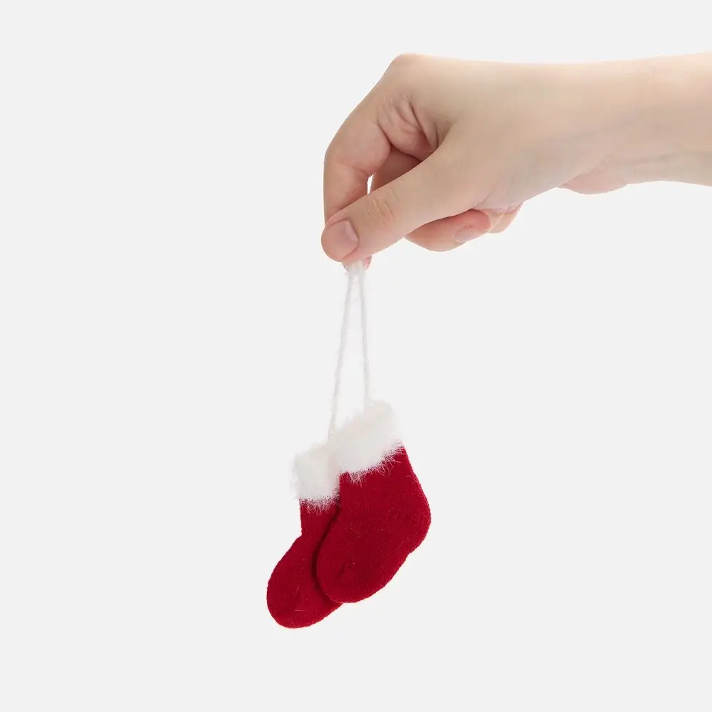 Миниатюрные вязаные подвески «Вьюшка» в виде носочков — это уютное и милое украшение для елки и новогоднего интерьера, отличное дополнение к основному подарку. Они добавят тепла и радости в пространство, создавая праздничное настроение.