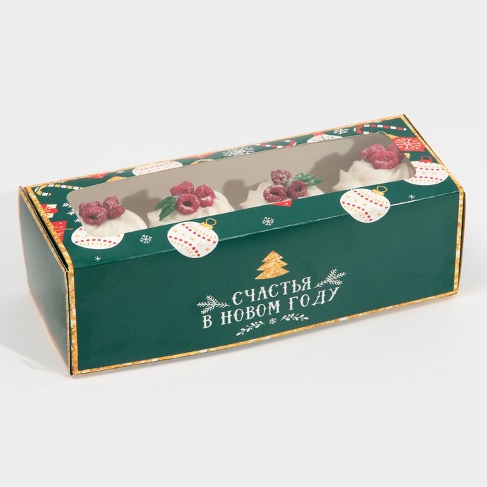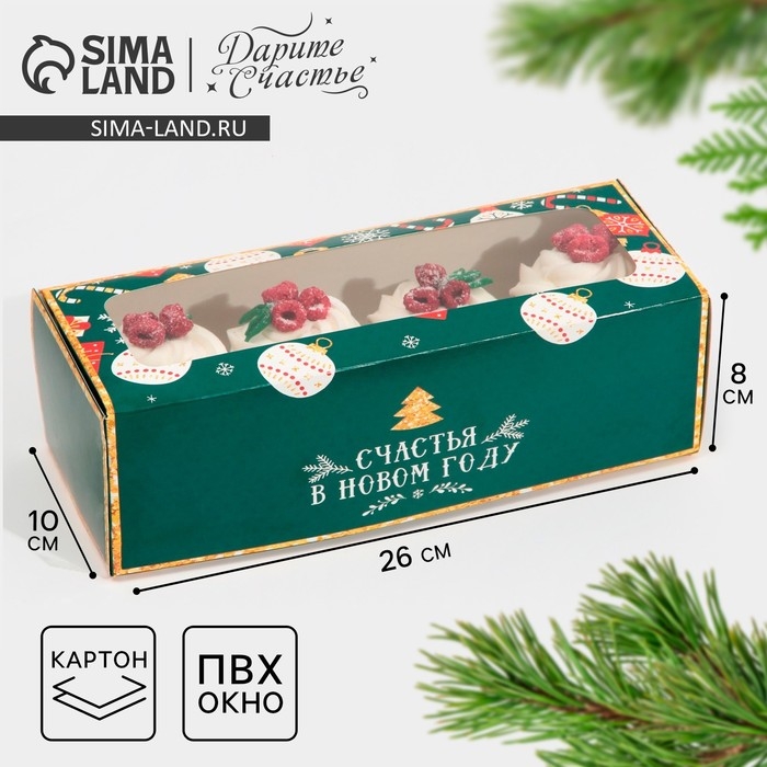 Коробка для кондитерских изделий с окном «Счастья в новом году», 26 х 10 х 8 см, Новый год