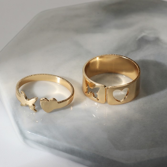 Набор колец 2 штуки «Неразлучники» нежность, цвет золото, безразмерные