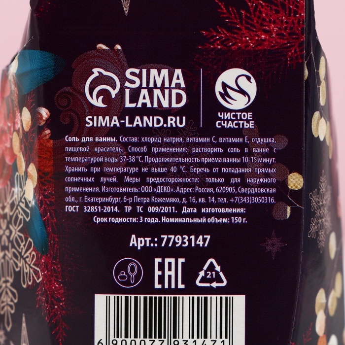 Соль для ванны «Для тебя в Новом Году», 150 г, аромат лаванды, ЧИСТОЕ СЧАСТЬЕ