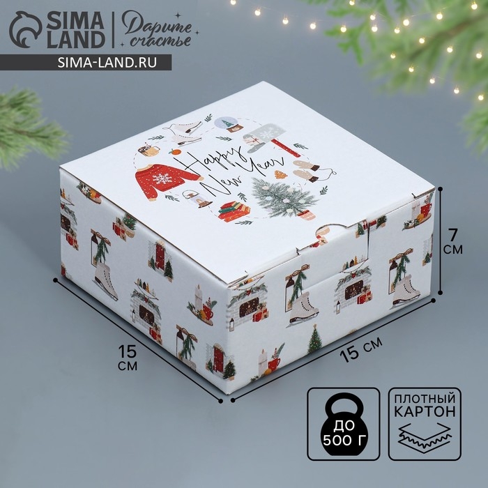 Коробка подарочная новогодняя складная «Хюгге», 15 х 15 х 7 см, Новый год