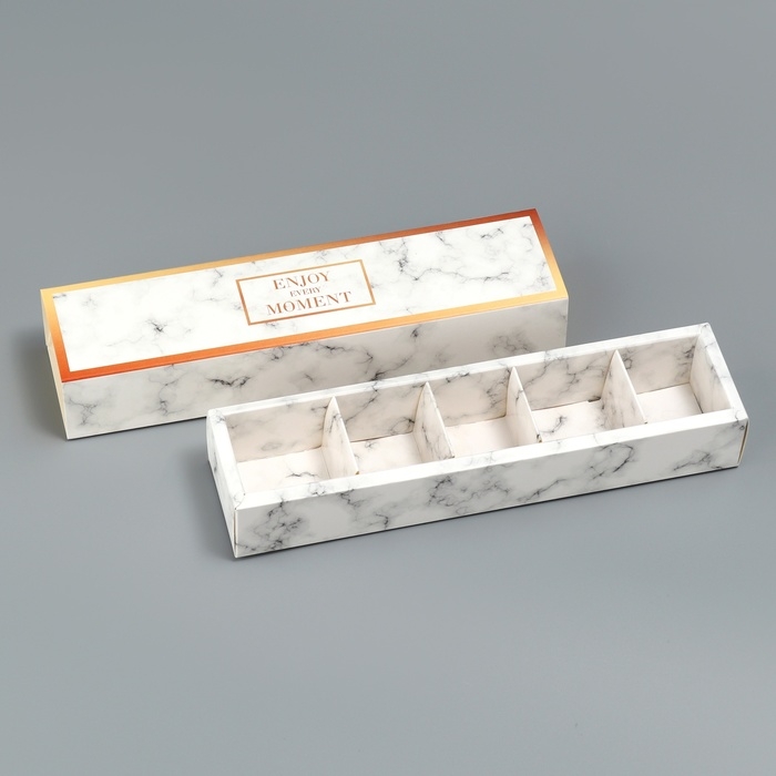Коробка для конфет, кондитерская упаковка, 5 ячеек, «Мрамор», 5 х 21 х 3.3 см