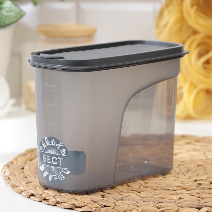 Ёмкость для сыпучих продуктов «Бест», 1,5 л, 9,5×19×14 см, прозрачный, крышка серая