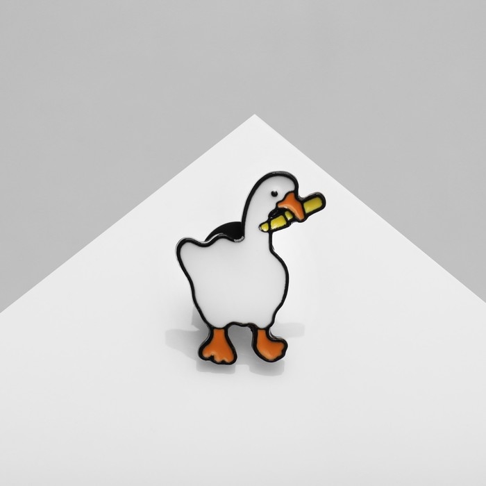 Значок «Гусь» с ножом, цвет бело-оранжевый в чёрном металле