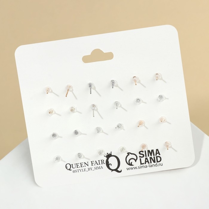Пусеты 6 пар «Жемчужные» планеты, цвет бело-синий в серебре
