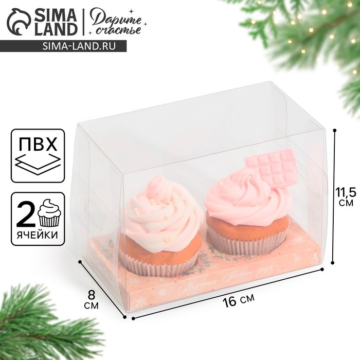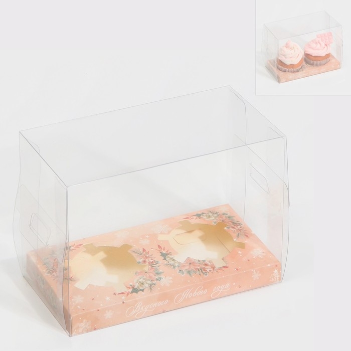 Коробка для капкейка «Зимние цветы», 8 х 16 х 11.5 см, Новый год