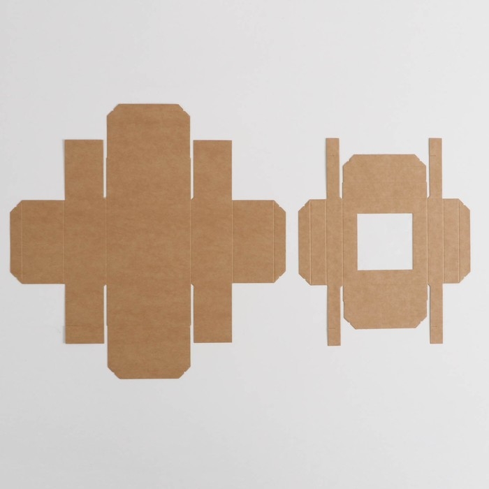 Коробка складная, крышка-дно,с окном, крафт, 10 х 10 х 5 см