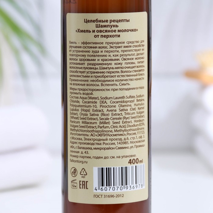 Шампунь для волос от перхоти "Целебные рецепты" хмель и овсяное молочко, 400 мл