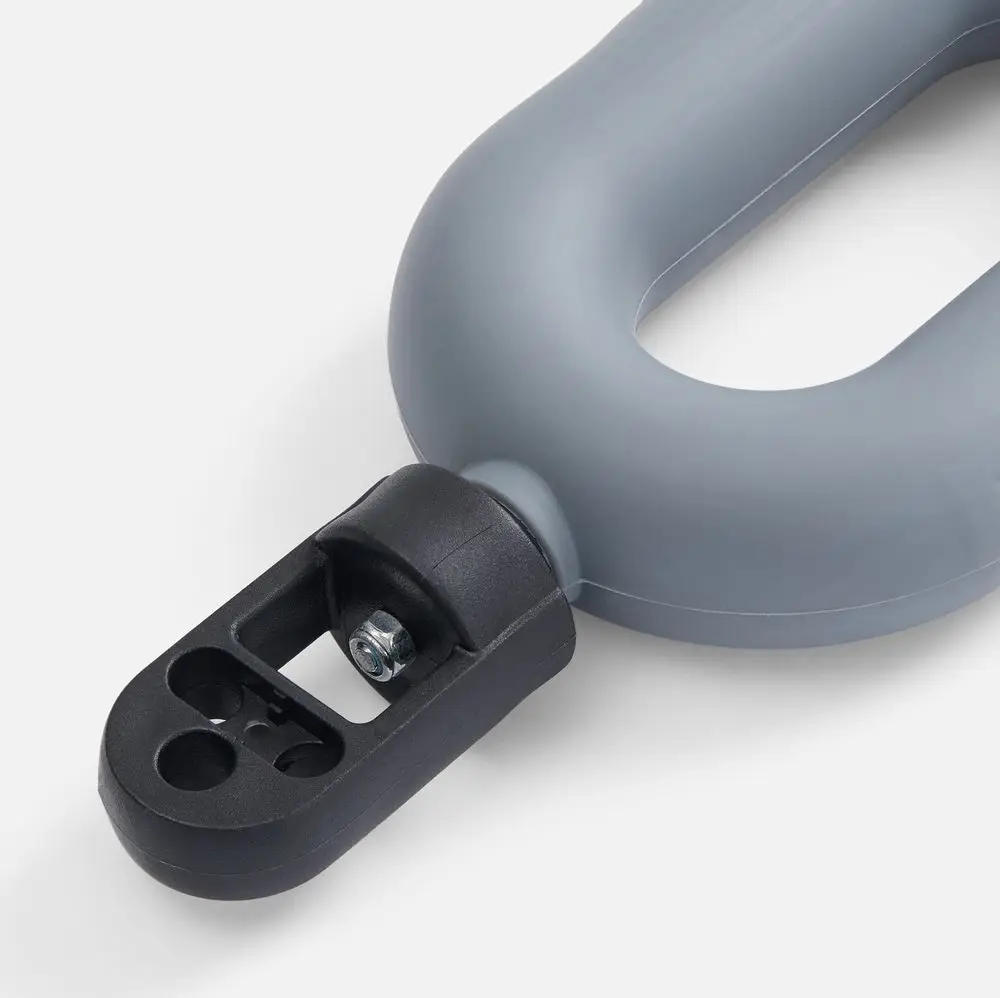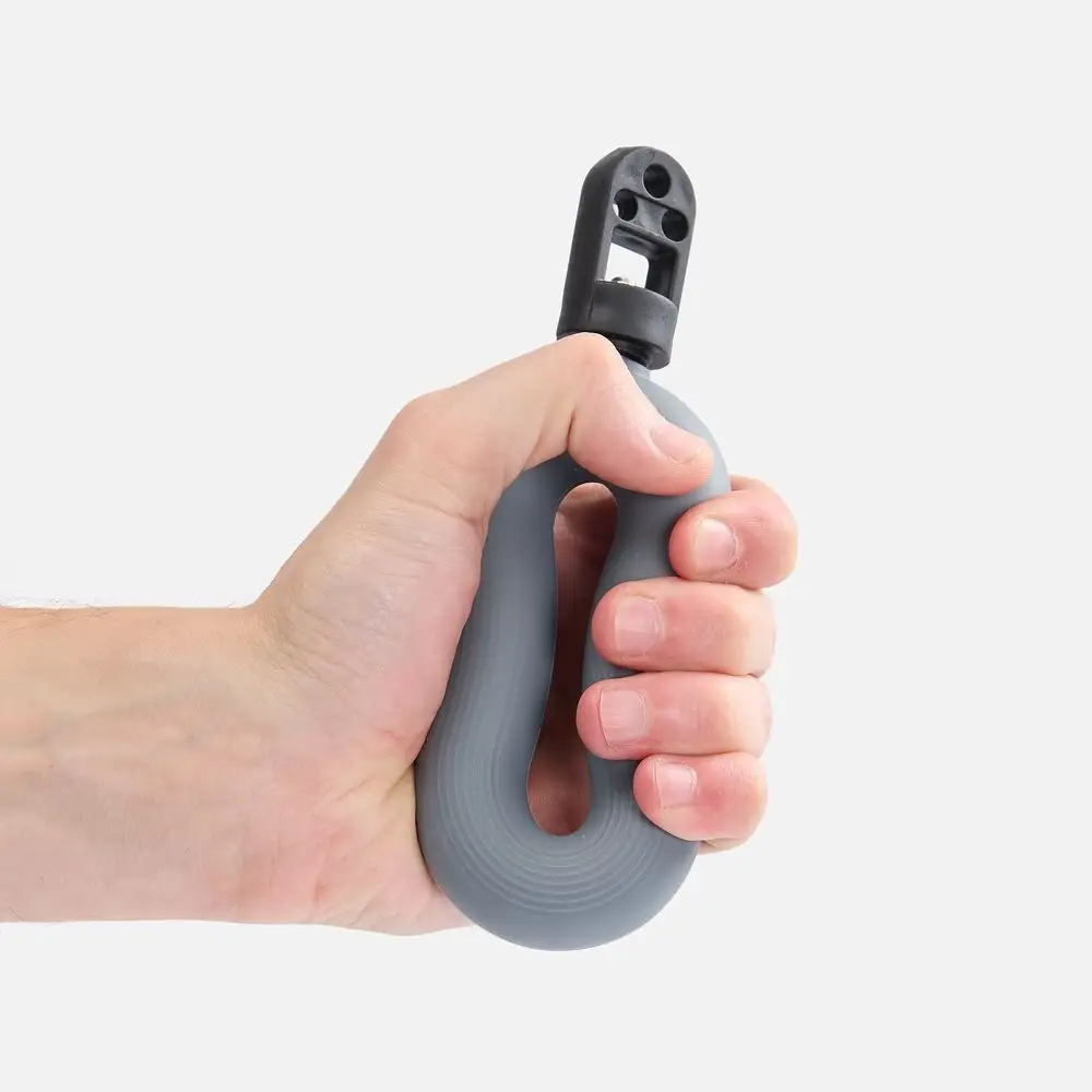 Шнур к ручкам-эспандерам крепится через пластиковый переходник с отверстиями для продевания шнура. Эспандеры выполнены из тактильно приятного силикона, обладающего высокой степенью эластичности и прочности, а широкий шнур (5 мм) из плотного ВПХ.