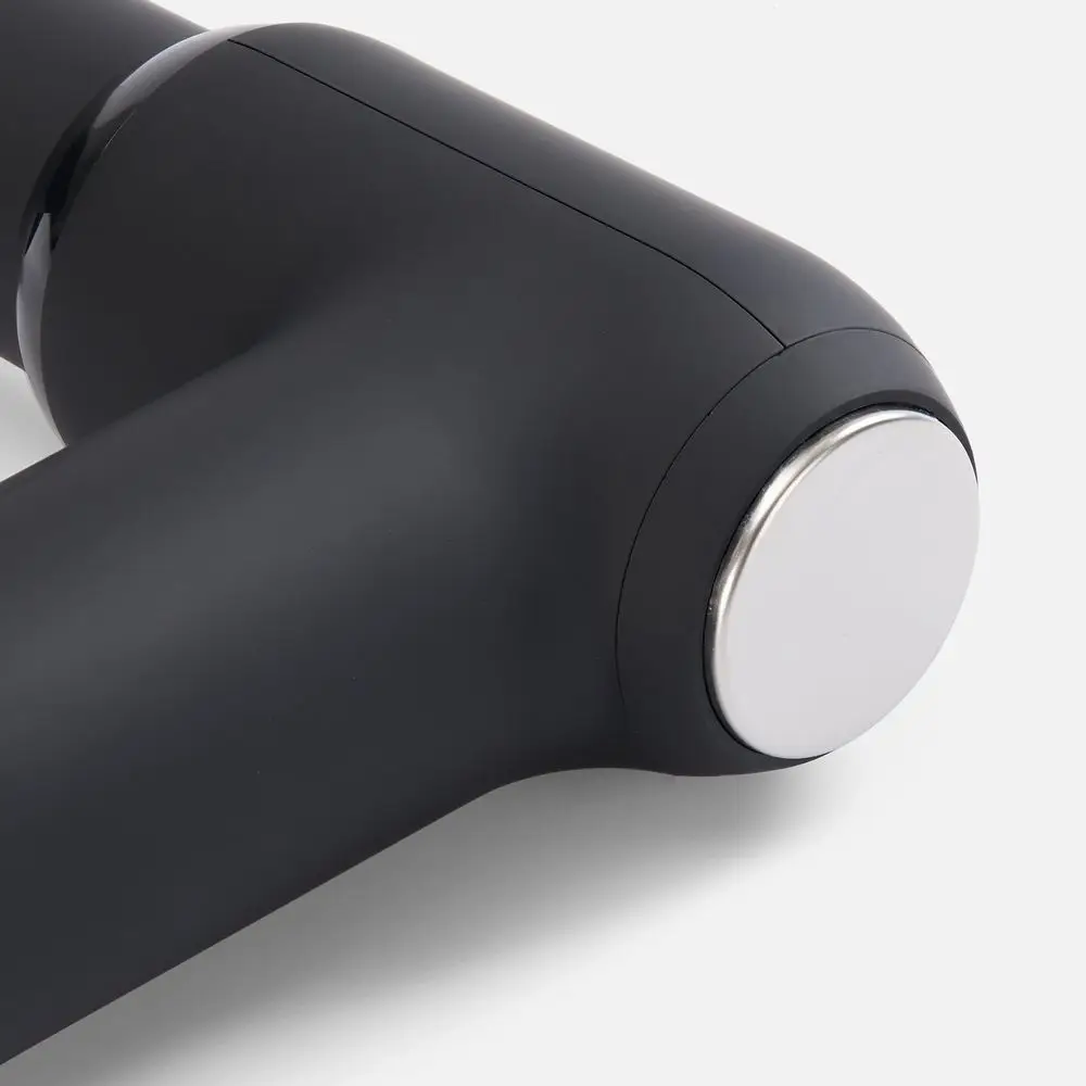 Конструкция массажера выполнена в форме мини-пистолета с тактильно приятным матовыми покрытием и эргономичной ручкой — его удобно держать в руке, а простая система управления при помощи кнопок делает его использование комфортным и понятным.