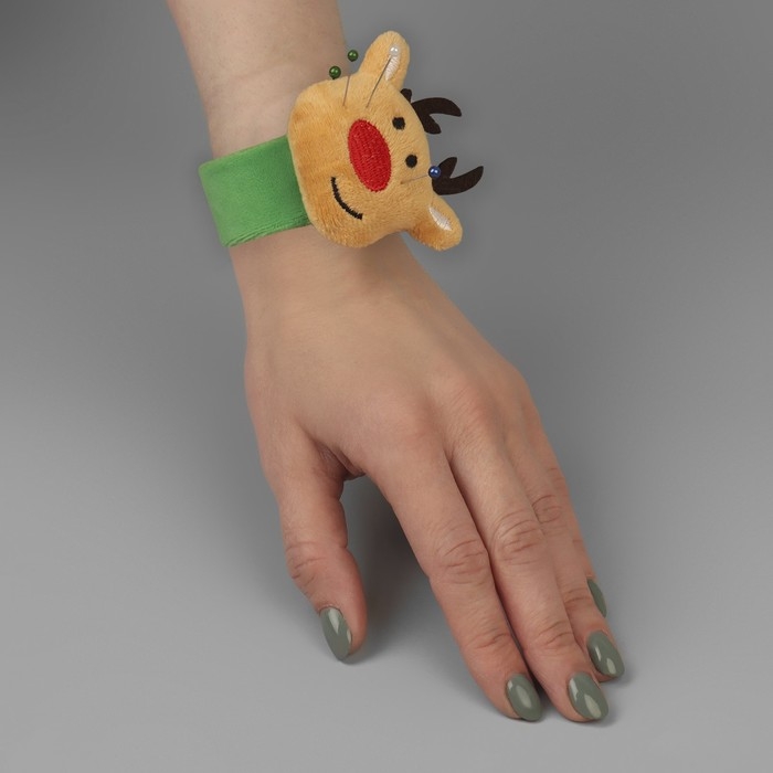 Игольница на браслете «Олень», 23 × 7 см, цвет зелёный/коричневый