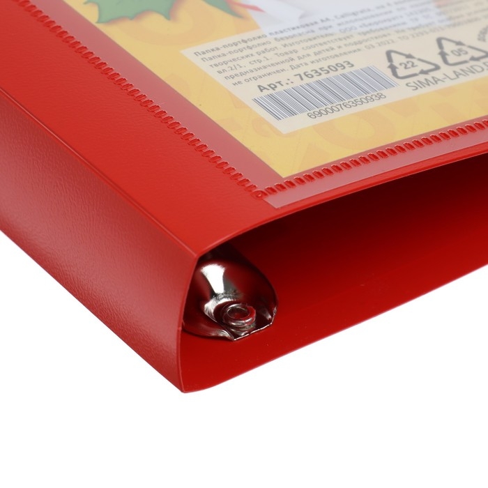 Папка-портфолио А4, Calligrata "Веселая школа", пластиковая, на 4 кольцах, для школьника, 20 файлов