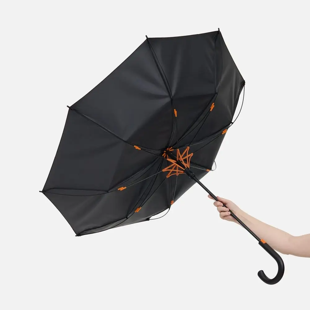 Легкий и невероятно прочный каркас из стеклопластика не боится порывистого ветра. Сдержанный дизайн получает яркую деталь — цветные акценты на каркасе, которые видны только когда зонт раскрыт.