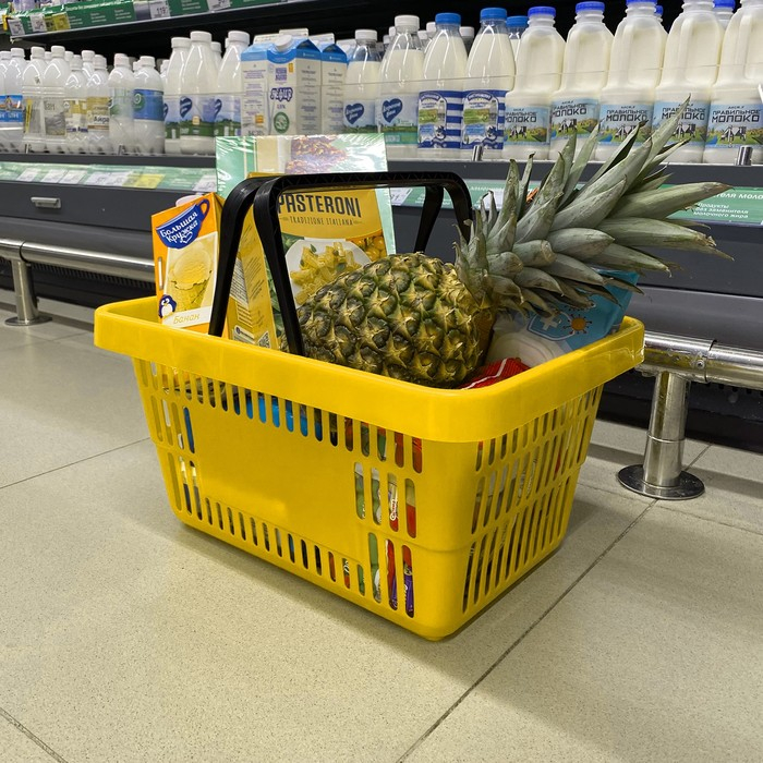 Корзина покупательская пластиковая, 20 л, 2 пластиковые ручки, цвет жёлтый