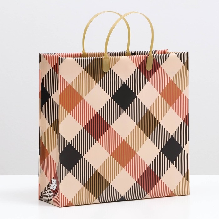 Пакет "Бежевый в клетку", мягкий пластик, 30 x 30 см, 120 мкм