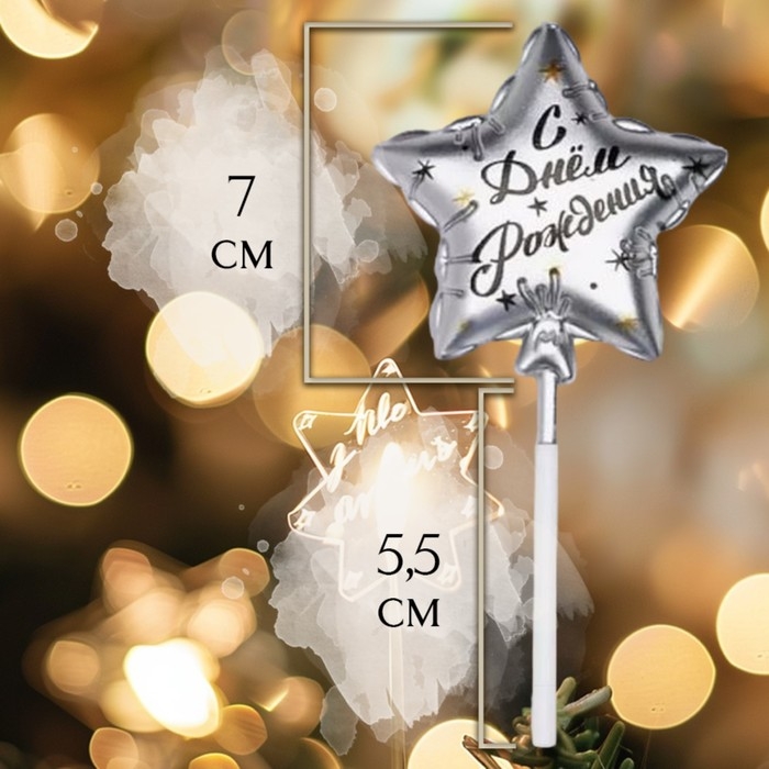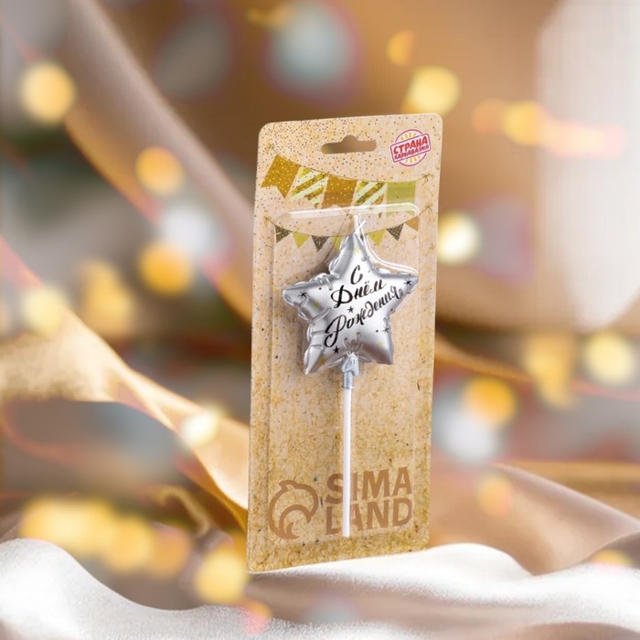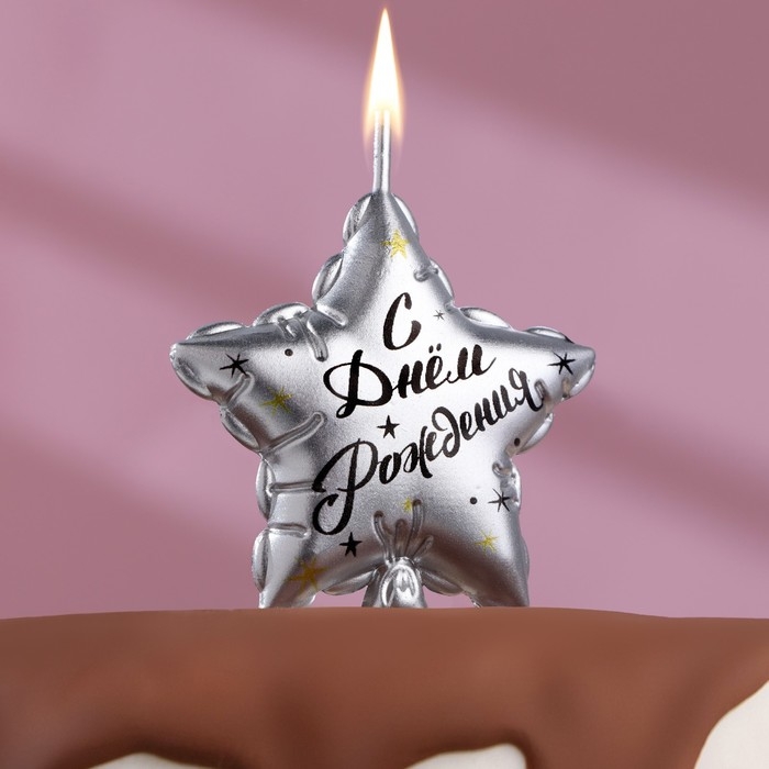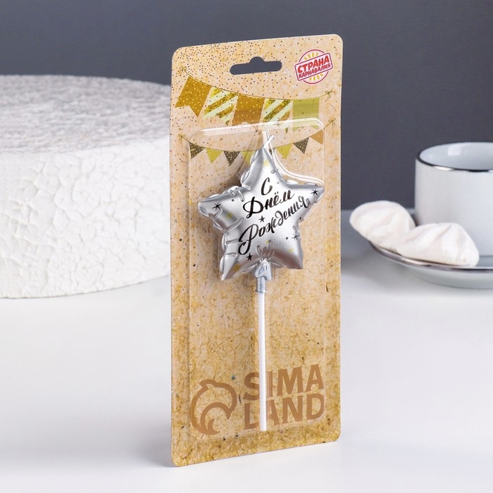 Свеча в торт на шпажке "Воздушный шарик.Звезда", 7 см, серебряная