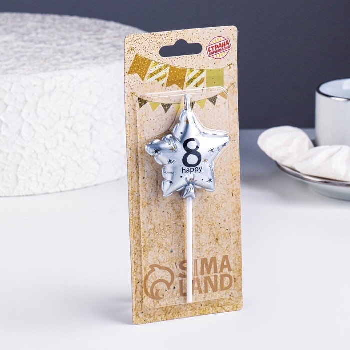 Свеча в торт на шпажке "Воздушный шарик.Звезда", цифра 8, 5,5 см, серебряная