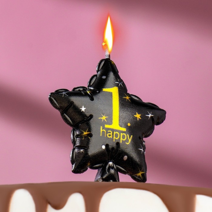 Свеча в торт на шпажке "Воздушный шарик.Звезда", цифра 1, 5,5 см, черная с золотом