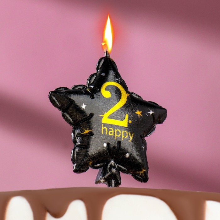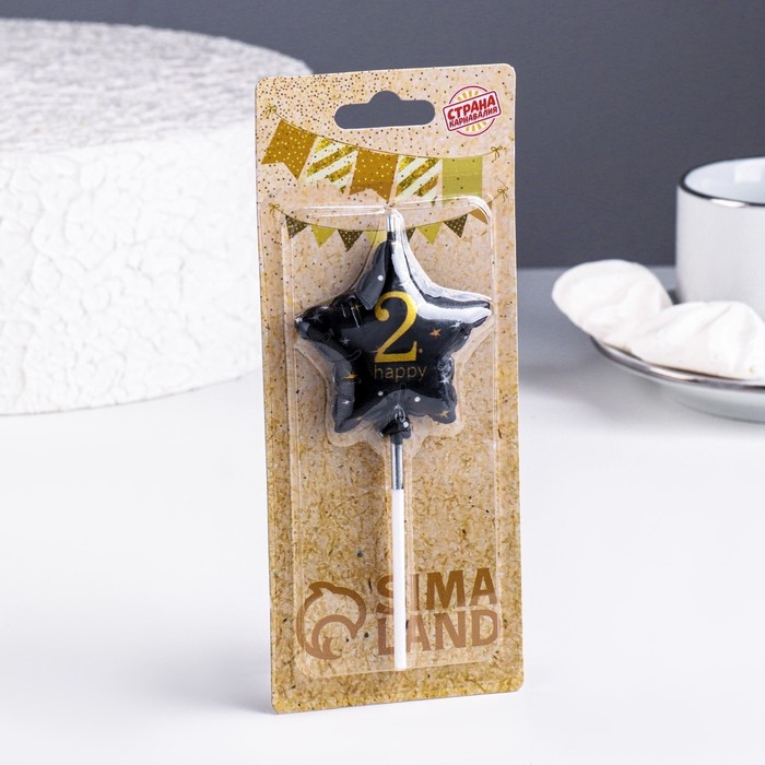 Свеча в торт на шпажке "Воздушный шарик.Звезда", цифра 2, 5,5 см, черная с золотом