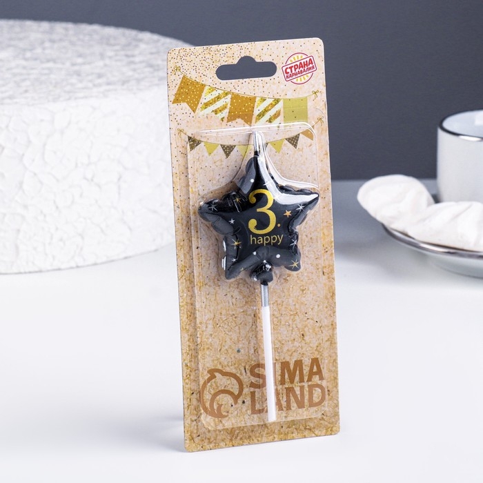 Свеча в торт на шпажке "Воздушный шарик.Звезда", цифра 3, 5,5 см, черная с золотом