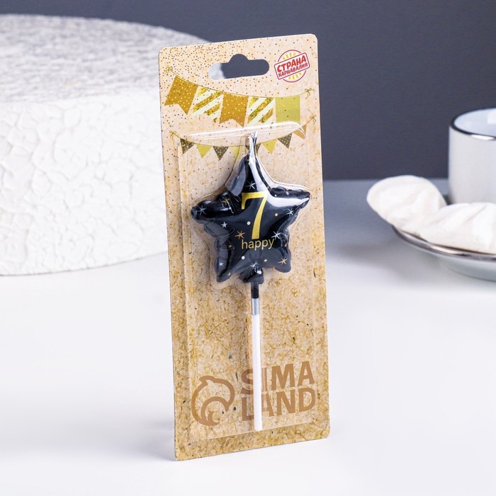 Свеча в торт на шпажке "Воздушный шарик.Звезда", цифра 7, 5,5 см, черная с золотом