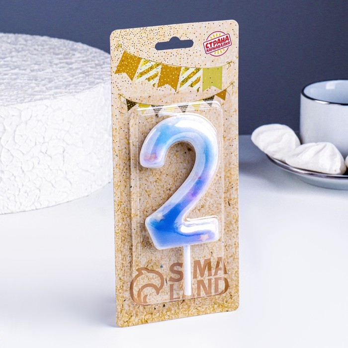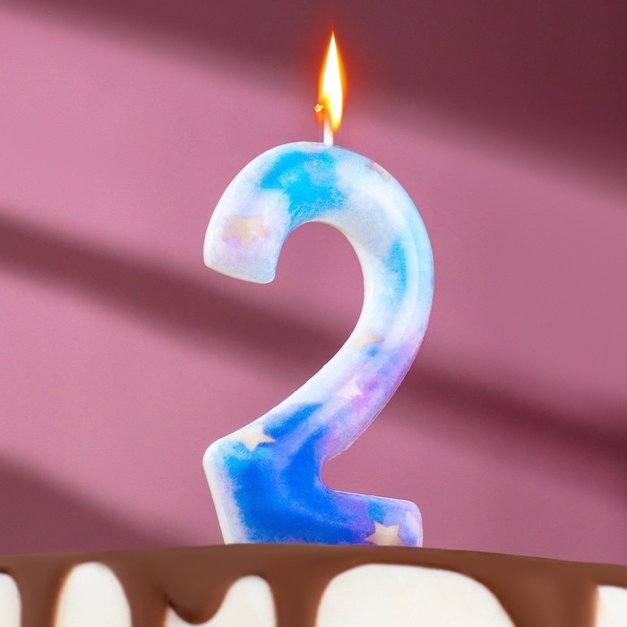 Свеча в торт на шпажке "Галактика", цифра 2, 9 см, ГИГАНТ