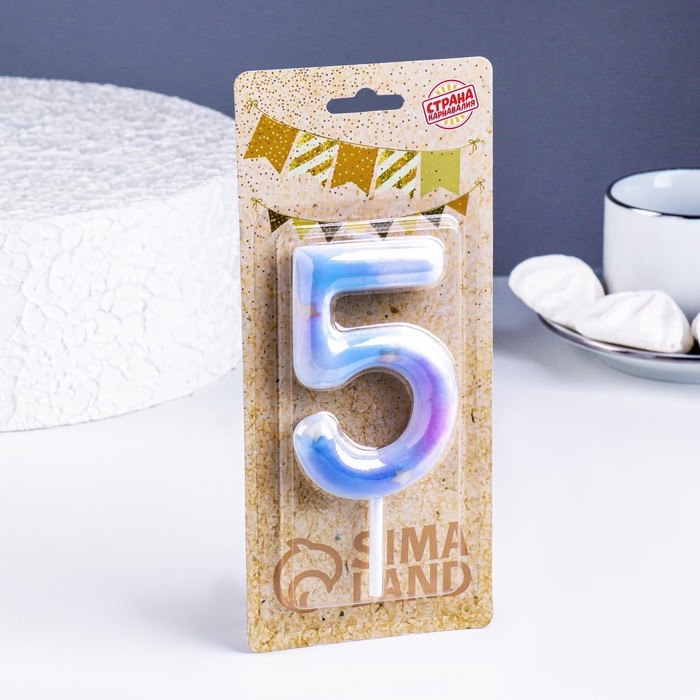 Свеча в торт на шпажке "Галактика", цифра 5, 9 см, ГИГАНТ