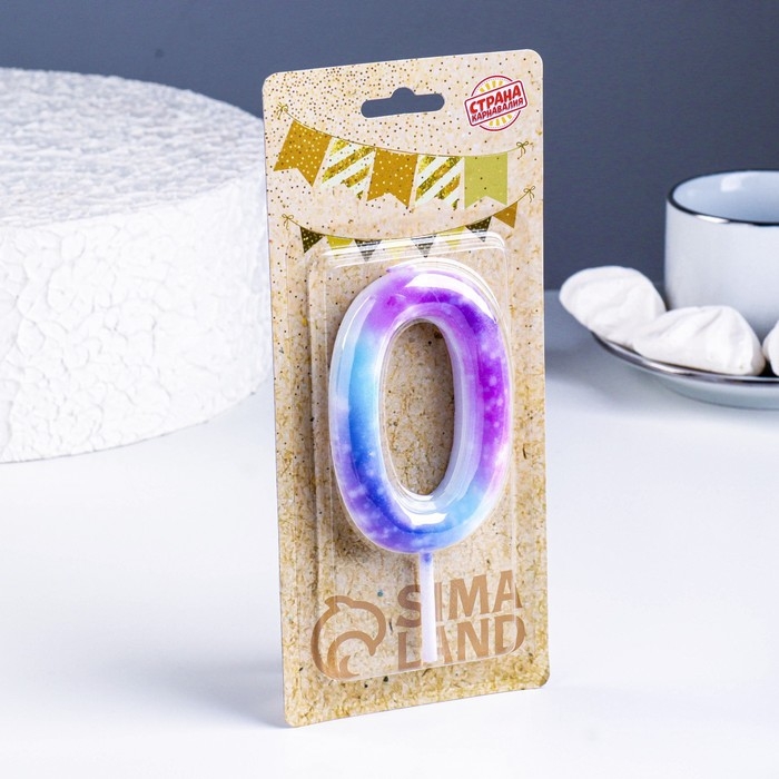 Свеча в торт на шпажке "Галактика", цифра 0, 9 см, ГИГАНТ
