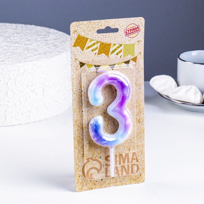 Свеча в торт на шпажке "Галактика", цифра 3, 9 см, ГИГАНТ