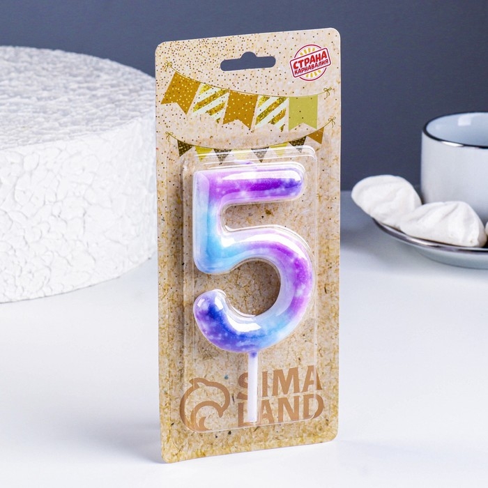 Свеча в торт на шпажке "Галактика", цифра 5, 9 см, ГИГАНТ