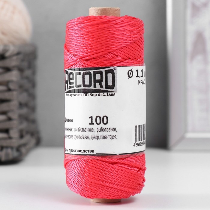 Нить кручёная 3-х прядная полипропиленовая, d=1.1 мм 100 м (красная) МИКС
