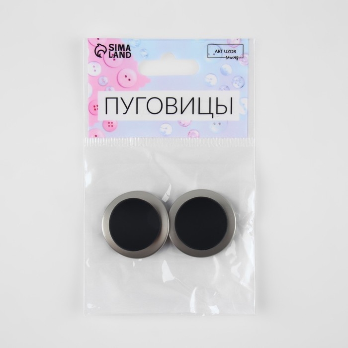 Набор металлических пуговиц на ножке, d = 27 мм, 2 шт, цвет серебряный/чёрный