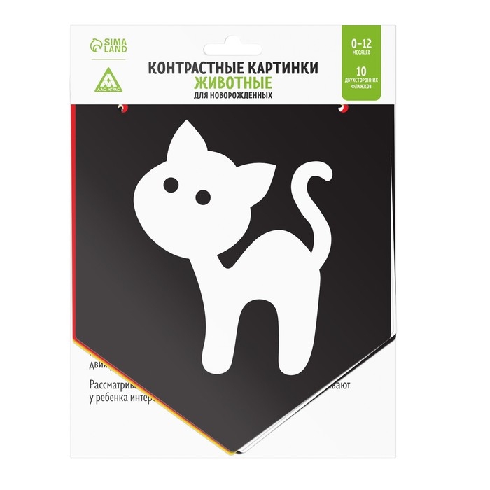 Контрастные картинки для новорождённых «Животные», 10 карт, 0+