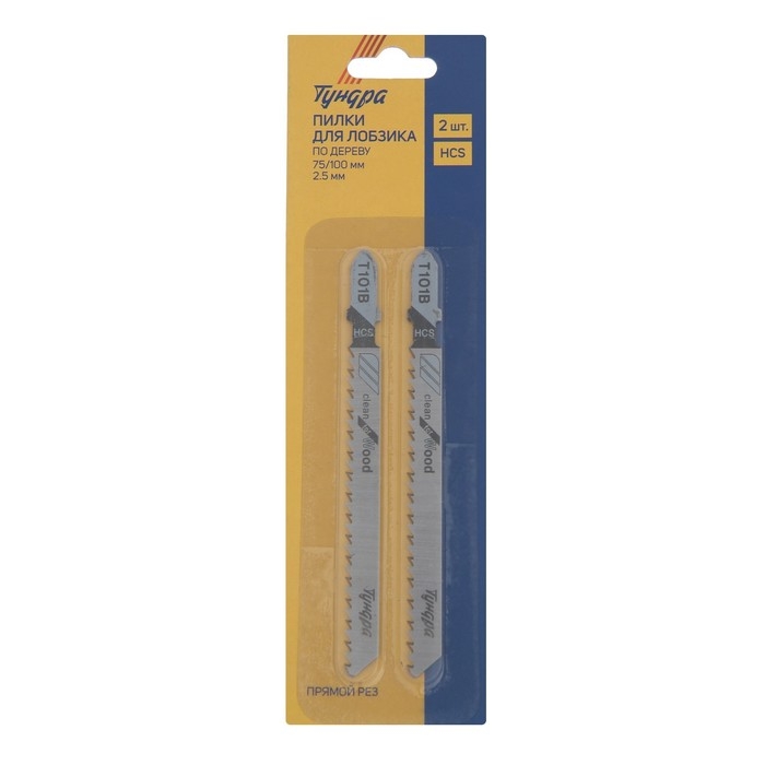 Пилки для лобзиков ТУНДРА, по дереву, прямой рез, HCS, 75/100 х 2.5 мм, 2 шт.