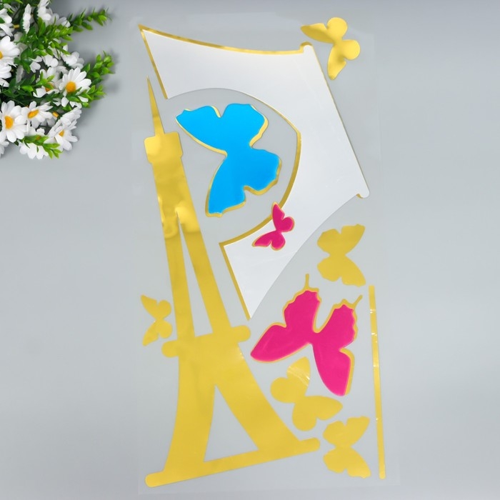 Наклейка интерьерная зеркальная "Эйфелева башня" цветная 60х32 см