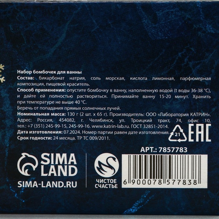 Состав: бикарбонат натрия, соль морская, кислота лимонная, парфюмерная композиция, пищевой краситель.