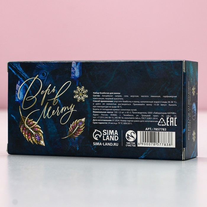 Подарочный набор косметики «Верь в мечту!», бомбочки для ванны с добавками, 2 х 65 г, Новый Год