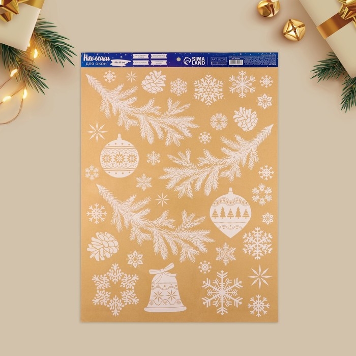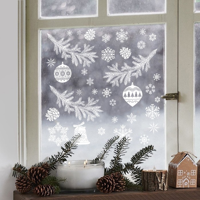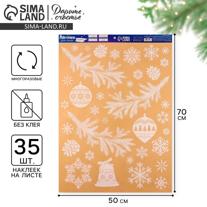 Наклейки новогодние на окна «Новогодние украшения», многоразовые, 50 х 70 см, Новый год