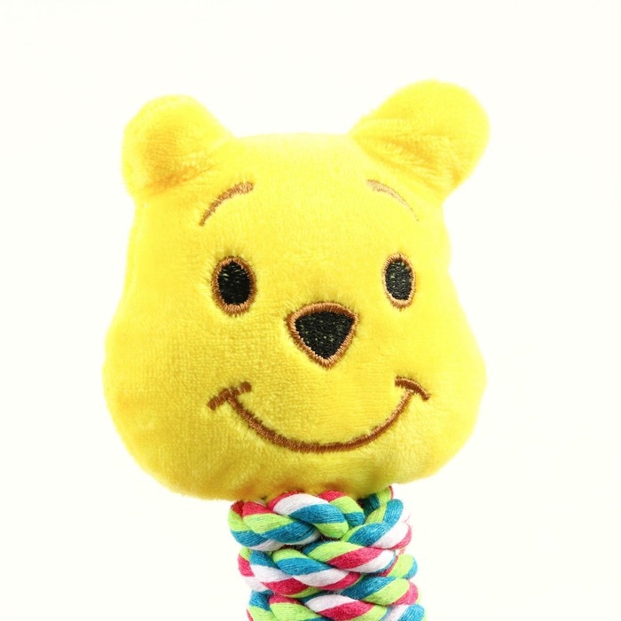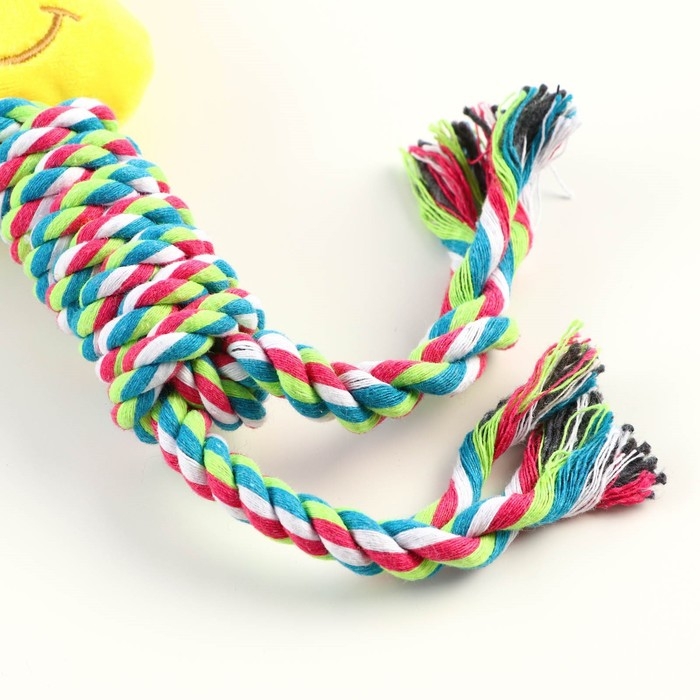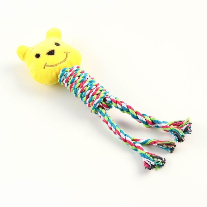 Игрушка мягкая для собак "Пёс" с пищалкой и канатом, 39 х 11 см, коричневая