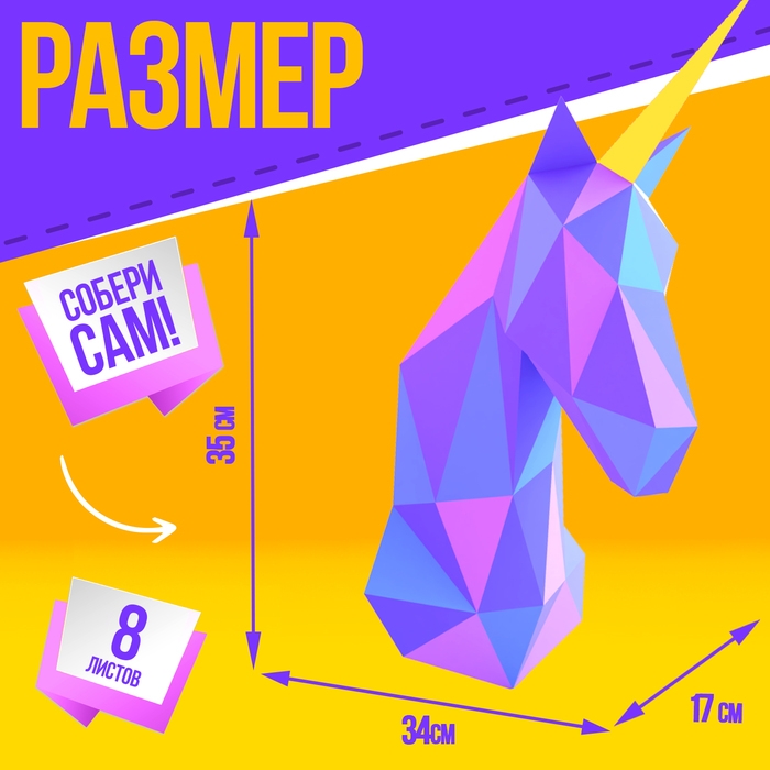 Полигональный конструктор «Единорог», 8 листов