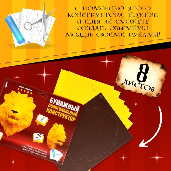 Полигональный 3D-конструктор — это множество небольших элементов из бумаги, которые склеиваются между собой и превращаются в объёмную фигуру.
