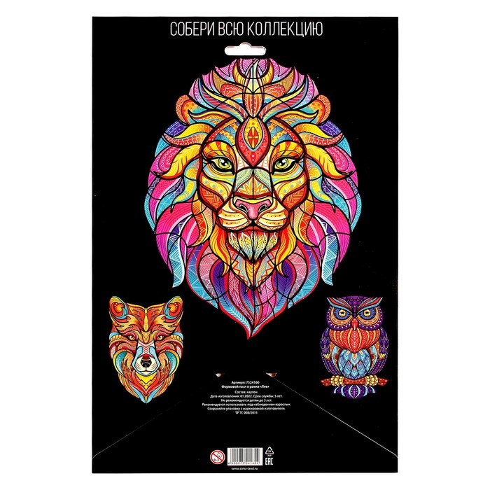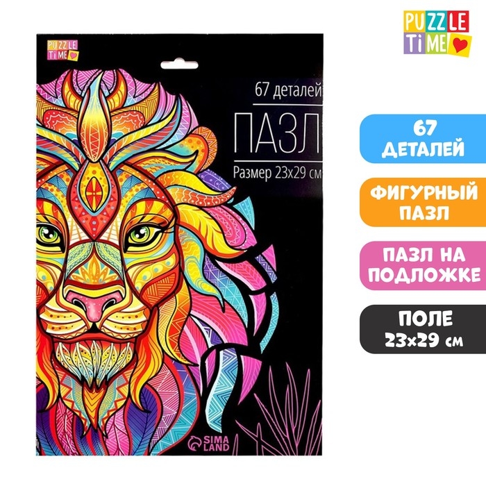 Фигурный пазл в рамке «Лев», на подложке, 67 деталей