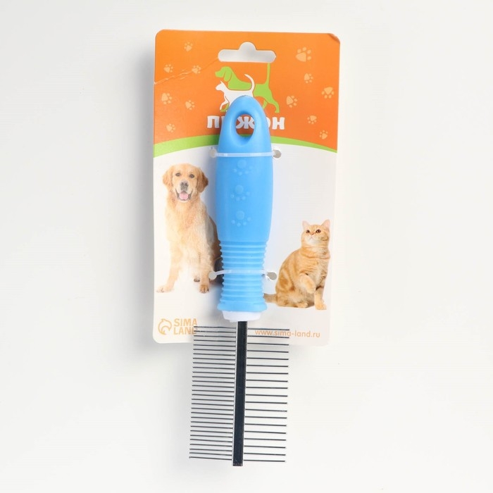 Расческа предназначена для тщательного ухода за шерстью кошек и собак. Она легко удаляет частички пыли и грязи с шерсти животного, не повреждая поверхность кожи и не травмируя структуру шерсти.