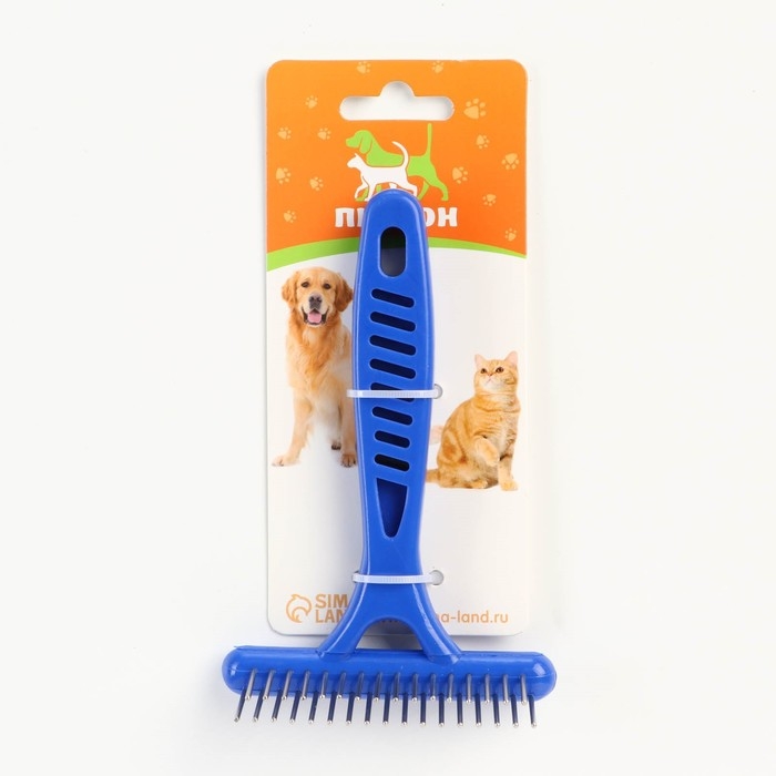 Расческа предназначена для тщательного ухода за шерстью кошек и собак. Она легко удаляет частички пыли и грязи с шерсти животного, не повреждая поверхность кожи и не травмируя структуру шерсти.